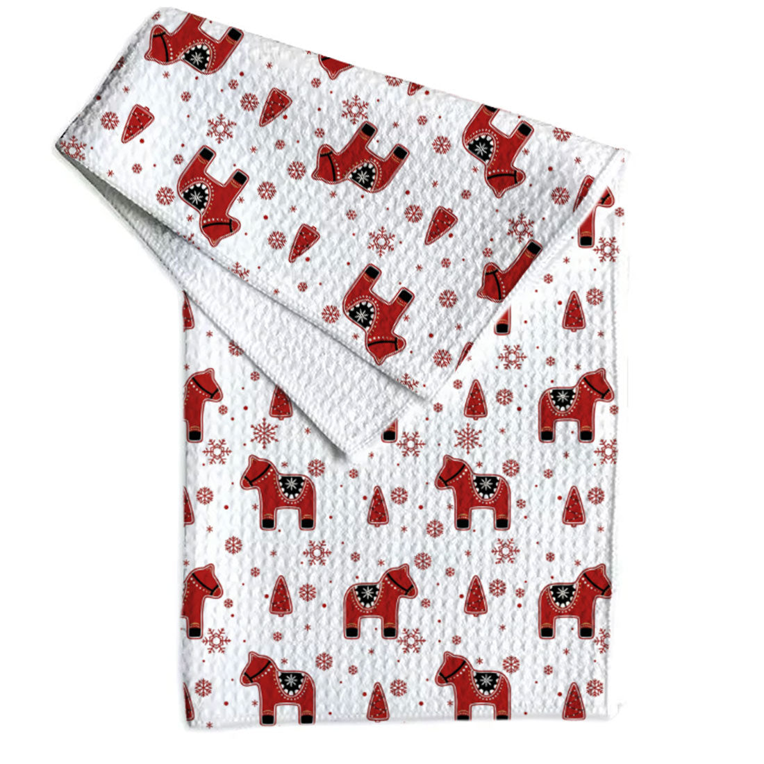 Bring a touch of Swedish tradition to your kitchen with our Christmas Nordic Dala Tea Towel. Inspired by the classic red Dala horse — a timeless symbol of craftsmanship and heritage — this design celebrates simplicity, culture, and Scandinavian charm.
